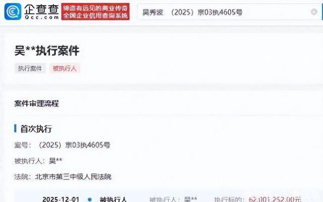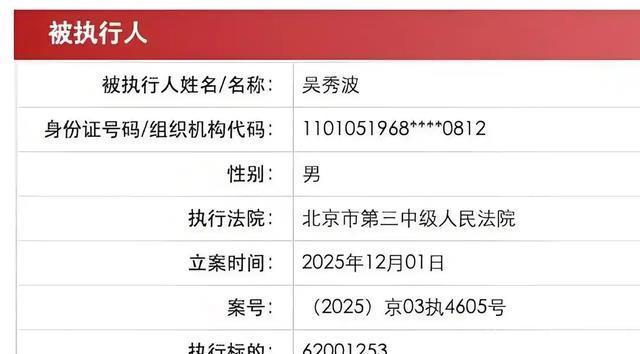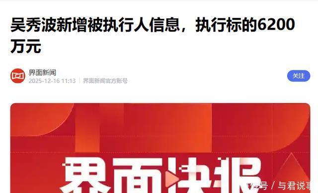 参考资料 吴秀波新增被执行人信息,执行标的6200万元界面新闻2025-12-1611:13界面新闻官方账号