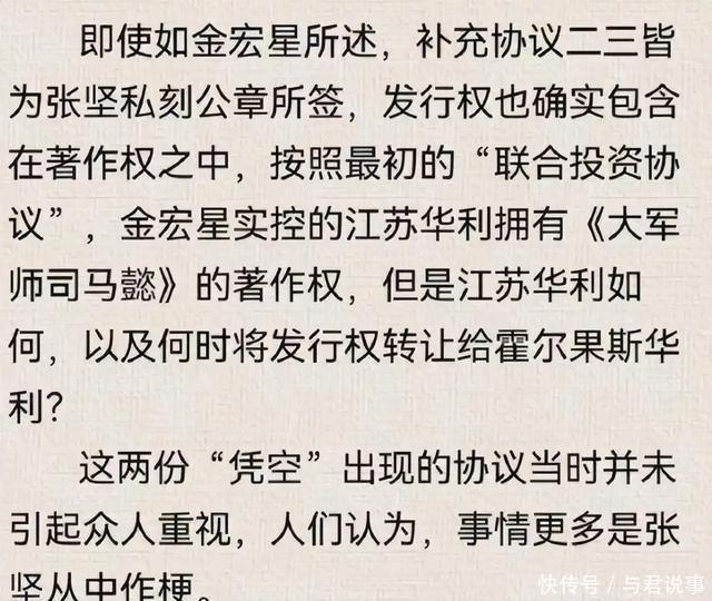 于是他砸锅卖铁自己垫钱把戏拍完了。 结果呢?等剧火了,赚了大钱了,金宏星跳出来说: 那份协议是假的,上面的公章是张坚私刻的,我从来没说过要撤资,这收益分红我得拿一半!