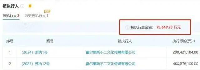 先是去年11月,江苏那边的高级法院给了当头一棒,强制执行金额高达4.66亿元。 紧接着今年1月,又是2.9亿元的执行单砸下来。 再加上零零碎碎的其他债务,外界估算他背负的总金额早就突破了7.56个“小目标”,甚至如果算上这次新增的,可能直逼8个亿以上。
