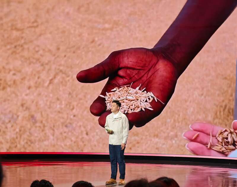 湖南三湘都市报记者曾冠霖拿着一袋大米走上台。这袋大米来自在非洲冈比亚的农民穆萨,穆萨曾将大米亲手带到湖南,送到他的老师袁隆平的墓前。躬身一粒种,万里春风来。一袋稻米,传递中非深厚情谊,连接人类命运共同体的美好愿景。