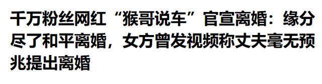结语: 每个人都有自己的选择,也许不是最好的,但是一定是面对没有改变的婚姻及时放手就是对的,比起“是不是剧本”我们更应该把重心放在猴哥所教的二手车砍价技巧上。 大象新闻——2025年10月8日——千万粉丝网红“猴哥说车”官宣离婚:缘分尽了和平离婚,女方曾发视频称丈夫毫无预兆提出离婚 闪电新闻——2025年10月9日——千万粉丝博主“猴哥说车”官宣离婚曾被赞“网红神仙眷侣”:缘分尽了,和平离婚