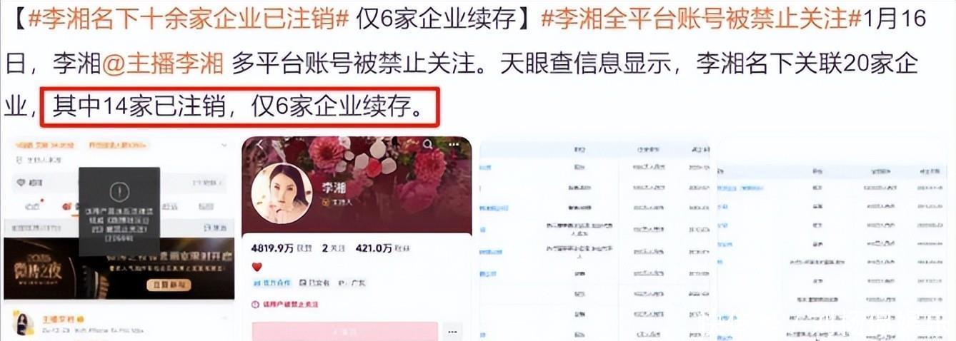 [免责声明]文章的时间、过程、图片均来自于网络,文章旨在传播正能量,均无低俗等不良引导,请观众勿对号入座,并上升到人身攻击等方面。观众理性看待本事件,切勿留下主观臆断的恶意评论,互联网不是法外之地。本文如若真实性存在争议、事件版权或图片侵权问题,请及时联系作者,我们将予以删除。信息来源:百度百科:李湘、王诗龄、个人资料李湘多个平台账号被禁止关注|界面新闻 · 快讯.界面新闻 [引用日期2026-01-16]李湘名下关联20家企业14家已注销 仅6家企业续存.搜狐娱乐 [引用日期2026-01-16]#平台客服回应李湘被禁止关注#.极目新闻 [引用日期2026-01-16]纵览热点丨李湘全平台账号禁止关注:被禁后其微博账号频繁上线,最后一次公开露面在两天前.纵览新闻.2026-01-16 [引用日期2026-01-16]
